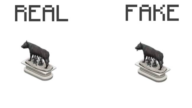 I also actually love the fake. It depicts the kids from that famous Romulus and Remusstory. It might be hard to tell with this one but the.